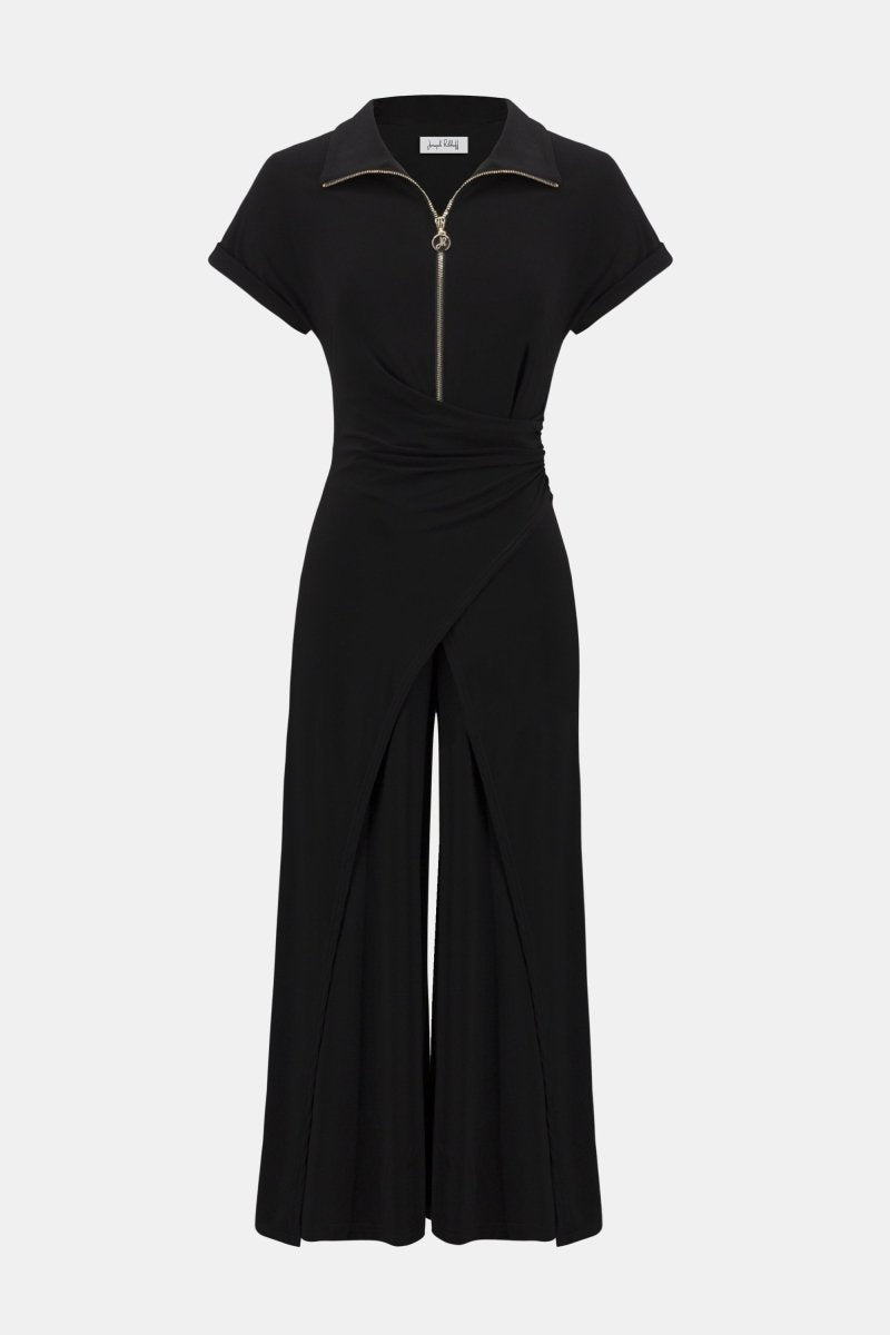 Silky Knit Culotte Jumpsuit With Gold Zipper Black