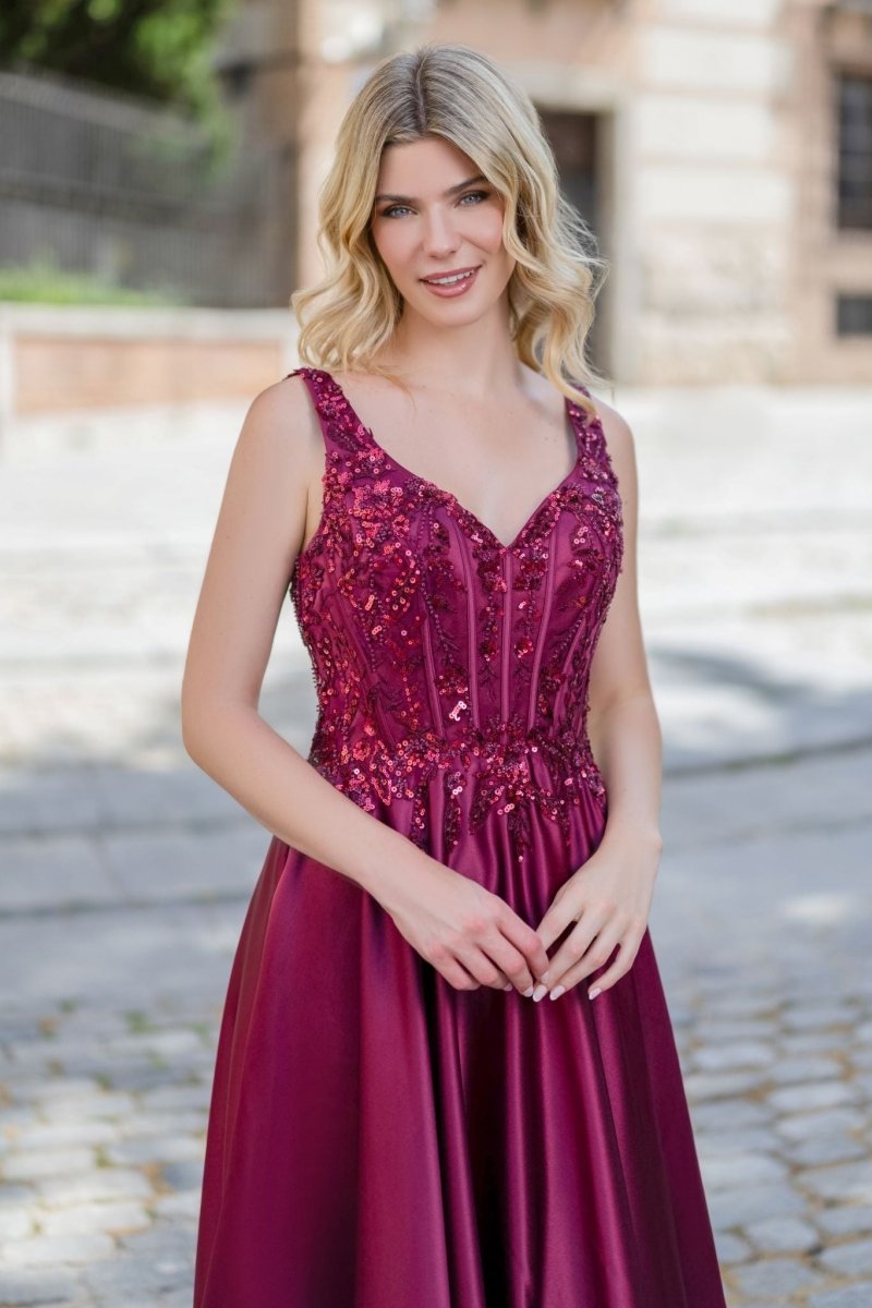 Het gecorseleerde lijfje is schitterend afgewerkt met glanzende pailletten en fijn borduurwerk, wat zorgt voor een romantische en luxueuze uitstraling. De brede schouderbanden geven extra draagcomfort en vormen een mooi, vrouwelijk decolleté.
