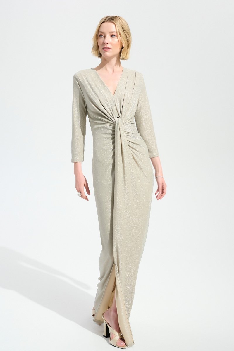 Sparkle Knit Sheath Gown With Draped Front