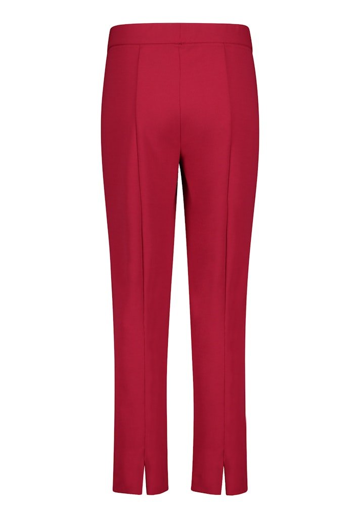 Deze stijlvolle outfit is een perfecte keuze voor bijvoorbeeld de oma van de bruid of bruidegom die er op een bijzondere dag elegant en verzorgd uit wil zien. De combinatie bestaat uit een soepel vallende top met een verfijnde abstracte bloemenprint in warme rood- en rozetinten en een bijpassende pantalon in een diepe, krachtige roodkleur.