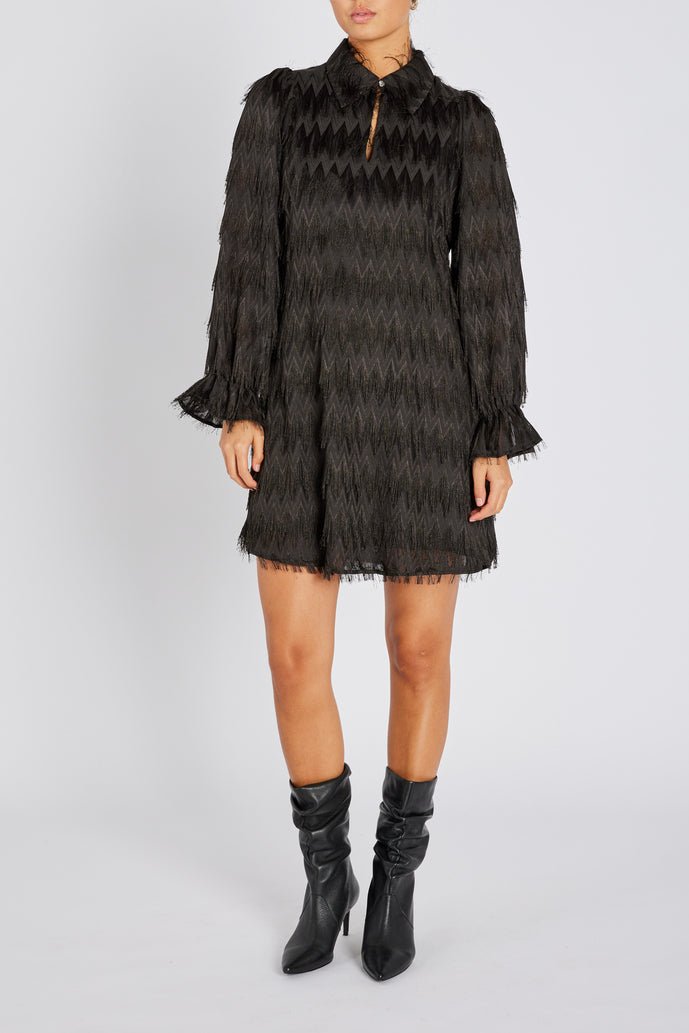 Draag de jurk met hakken en een clutch voor een chique uitstraling op speciale gelegenheden, of combineer hem met laarzen en een blazer voor een verfijnde alledaagse look. Gemaakt van 100% polyester. Het model is 174 cm lang en draagt maat 36/S.