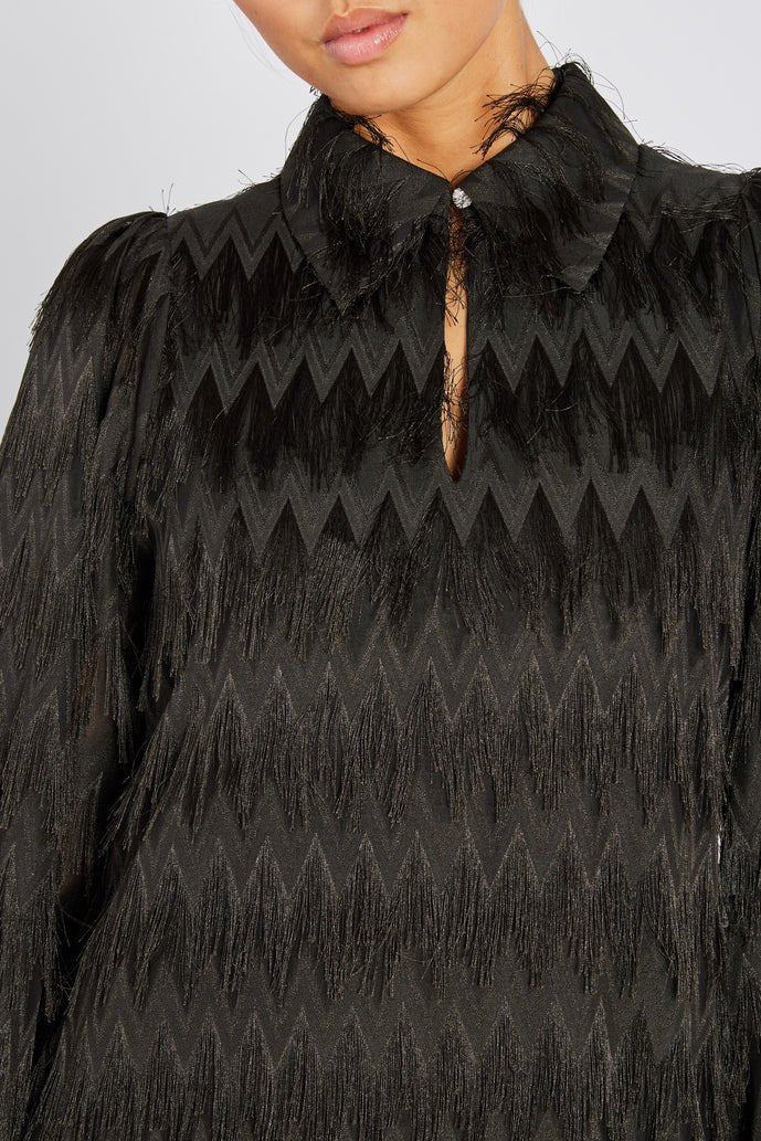 Deze elegante en vrouwelijke jurk heeft een lichtgewicht A-lijn silhouet en verfijnde details. De decoratieve knoop bij de kraag voegt een stijlvolle touch toe, terwijl de comfortabele voering zorgt voor een luxe gevoel. Dankzij de regular fit valt de jurk prachtig om het lichaam en biedt hij ultiem draagcomfort.
