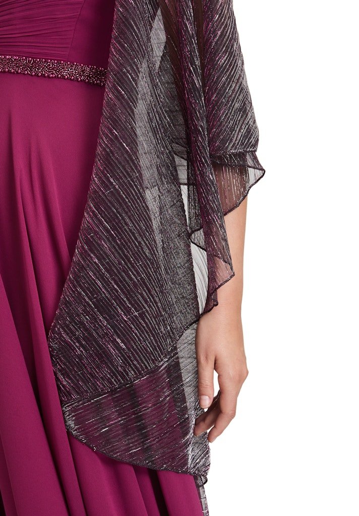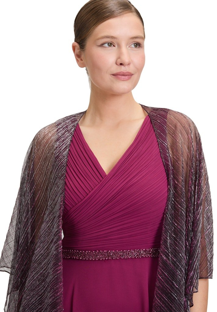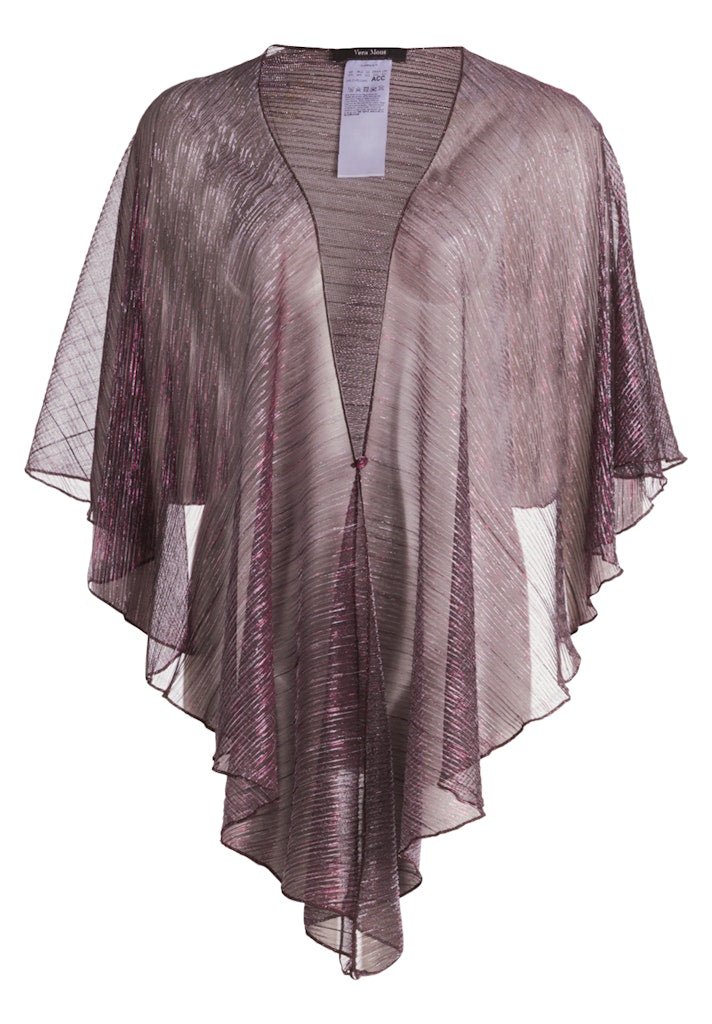 Breng een vleugje glamour in je outfit met deze schitterende lurex stola. De glinsterende stof voegt een feestelijke uitstraling toe, perfect voor speciale gelegenheden of om een dagelijkse look net dat beetje extra te geven. Met twee handige knoopjes kun je de stola eenvoudig transformeren. Maak de knoopjes los om de mouwen te verwijderen, en draag hem als een elegante sjaal.