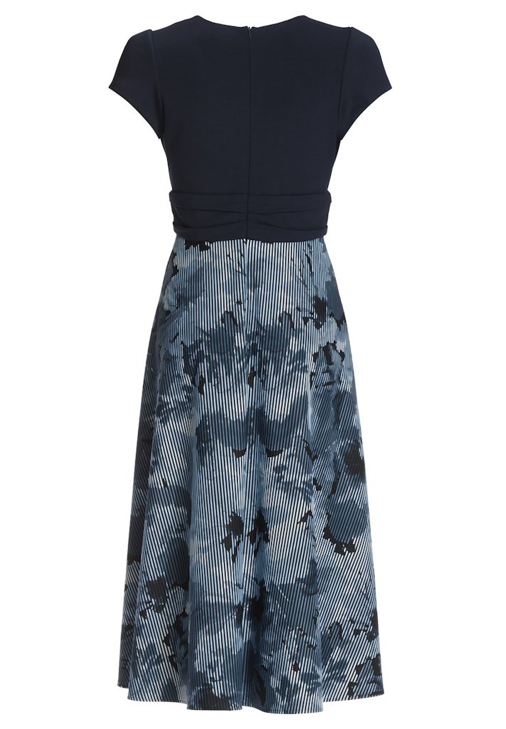 Deze betoverende midi-jurk van SWING combineert een chic, effen bovenlijf met een kunstzinnig gedessineerde rok voor een look die zowel verfijnd als eigentijds is. Het perfecte item voor bruiloften, feesten of andere bijzondere gelegenheden.