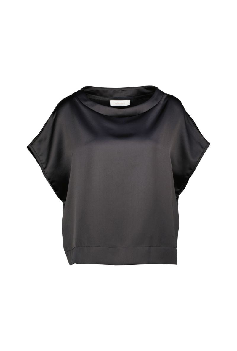 De New Chieti top van Amélie & Amélie is een elegante basic met een luxueuze uitstraling. De satijnlook geeft de top een subtiele glans, terwijl de rechte pasvorm en korte aangeknipte mouwen zorgen voor een moderne, minimalistische stijl.