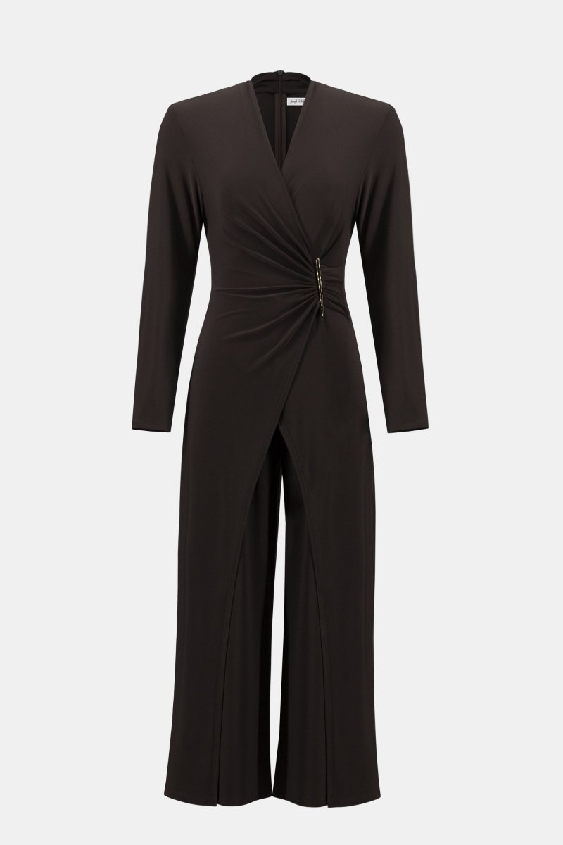 Stijlvol, vrouwelijk en comfortabel – deze elegante jumpsuit is een echte eyecatcher. Het ontwerp heeft een flatterende wikkel-look met een geplooid detail en een goudkleurige gesp die de taille prachtig accentueert. De V-halslijn en lange mouwen geven de jumpsuit een chique uitstraling, terwijl de wijde, cropped pijpen zorgen voor een moderne en speelse twist.