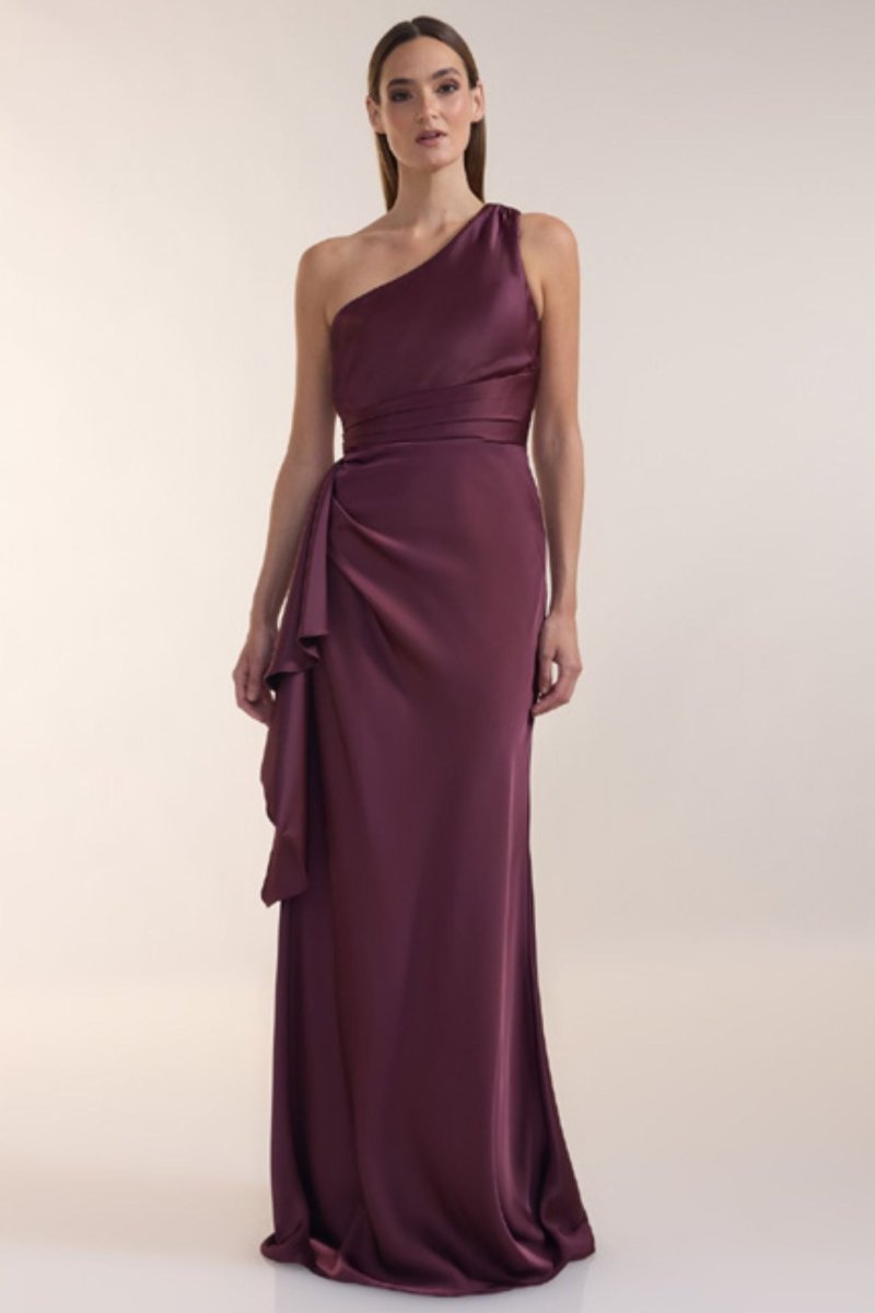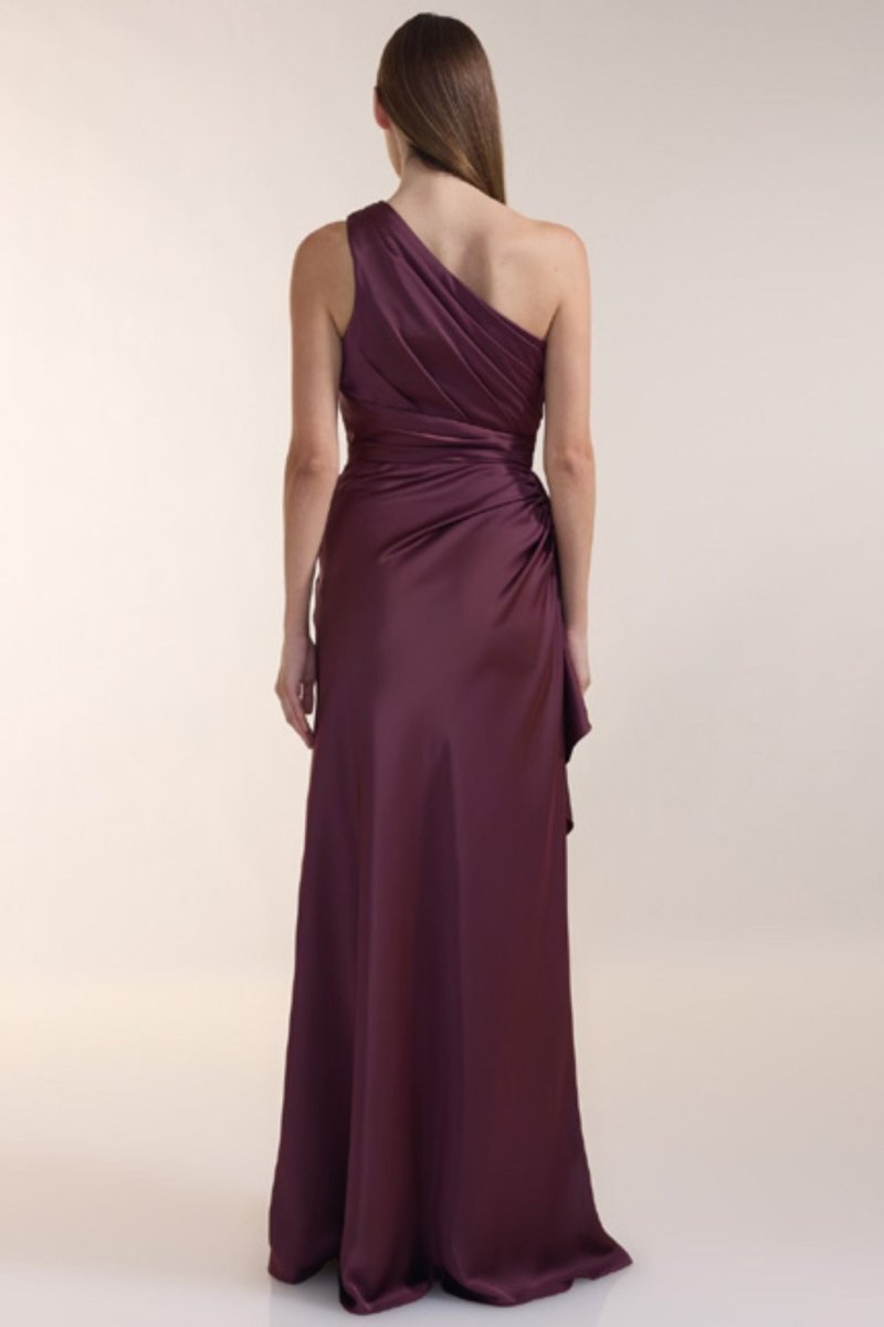 Maak een onvergetelijke indruk met deze prachtige galajurk van UNIQUE, ontworpen voor pure elegantie en verfijning. De asymmetrische one-shoulder halslijn geeft de jurk een moderne en luxueuze uitstraling, terwijl de glanzende satijnachtige stof soepel om het lichaam valt en prachtig beweegt bij elke stap.