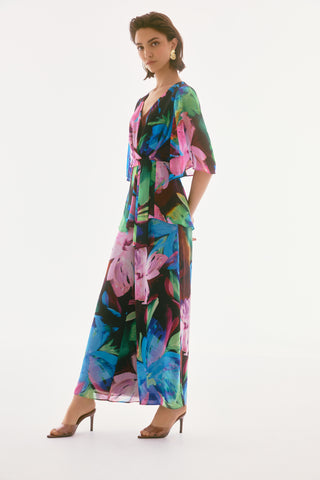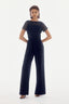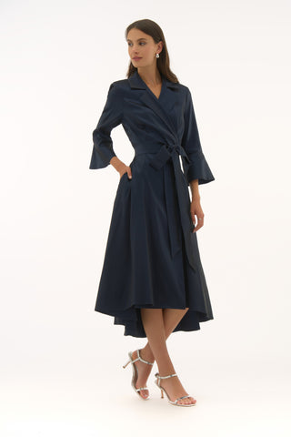 Stretch Poplin Straight Blouse with Organza Bell Sleeves