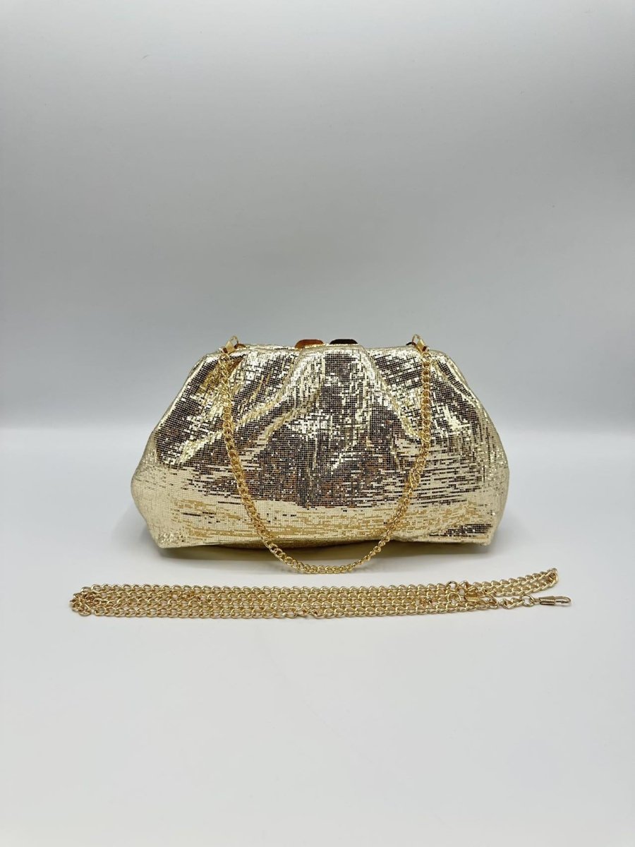 Maak een glamoureus statement met deze schitterende clutch. Het sprankelende ontwerp met metallic glans zorgt ervoor dat dit tasje dé blikvanger is bij elke gelegenheid. Perfect voor feestjes, bruiloften of een avondje uit.