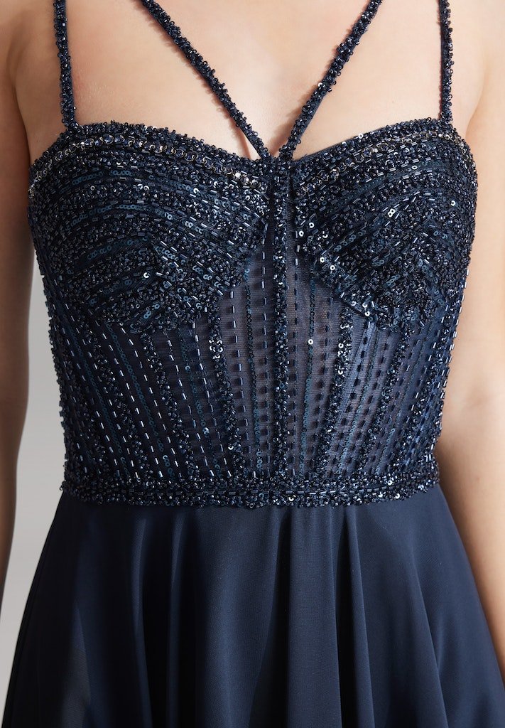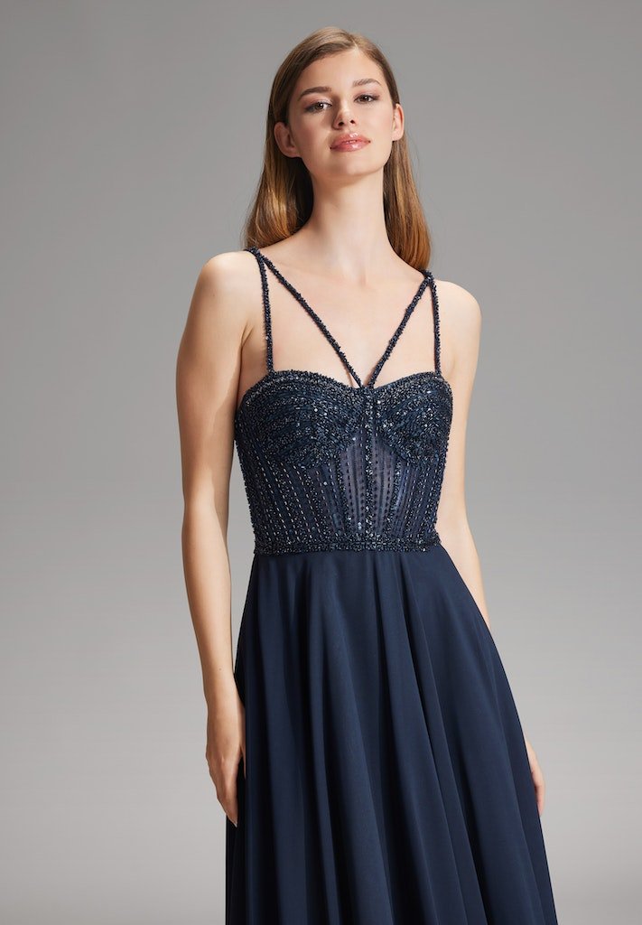 Of het nu gaat om de rode loper, een bal of afstudeerfeest: deze vloerlange avondjurk laat je bijna alles overschaduwen. De rijkelijk met parels geborduurde corsage, de ingebouwde cups en de soepele chiffonrok maken het de perfecte keuze - tenzij je je wilt verbergen!? Laat liever al je schoonheid zien, want hierin ben je absoluut uniek.