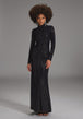 Deze elegante zwarte maxi avondjurk is een perfecte keuze voor een feestelijke gelegenheid. De jurk heeft lange mouwen en een opstaand kraagje, wat zorgt voor een verfijnde en chique uitstraling. De getailleerde pasvorm sluit mooi aan op het lichaam en loopt subtiel uit aan de onderkant, waardoor je silhouet prachtig geaccentueerd wordt. Het glinsterende paillettenontwerp voegt een vleugje glamour toe, perfect voor een avond vol stijl en allure.