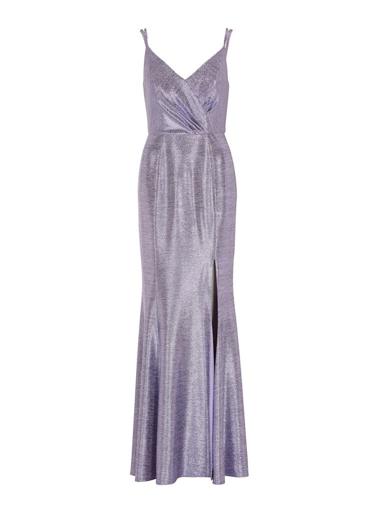 Laat je stralen in onze getailleerde avondjurk met een vleugje allure. De jurk kenmerkt zich door elegante spaghettibandjes en een verleidelijk hoge split, waardoor je moeiteloos de aandacht trekt. Of je nu een galadiner bijwoont of een glamoureus evenement, deze avondjurk combineert tijdloze klasse met hedendaagse flair, waardoor je onvergetelijk schittert bij elke stap.