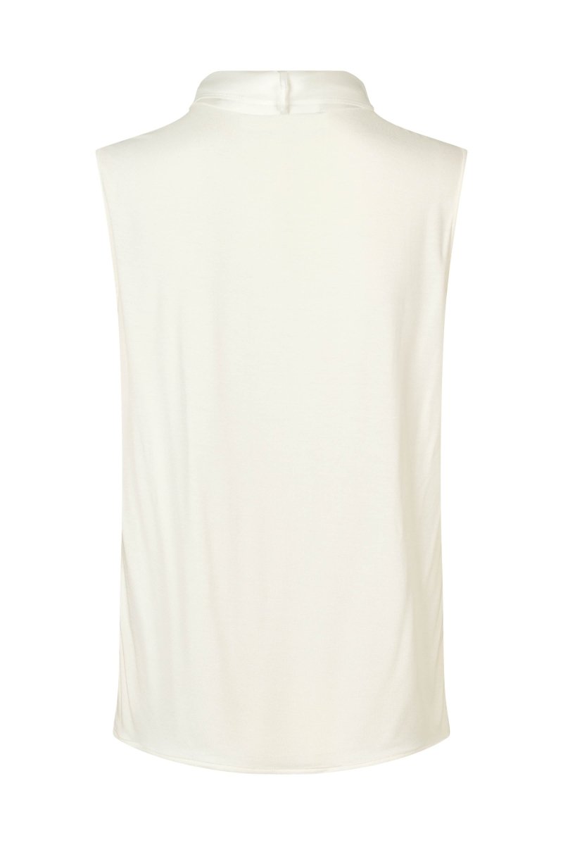 Stijlvolle en verfijnde mouwloze top van PBO in de kleur Star White, ontworpen voor de vrouw die houdt van luxe materialen en een elegante uitstraling met comfort.