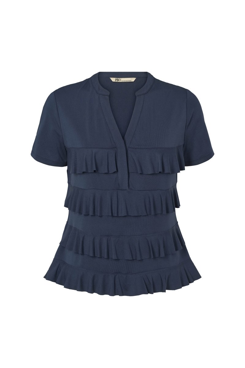 Deze elegante blouse is een echte eyecatcher dankzij de verfijnde details en vrouwelijke uitstraling. De horizontale belijningen met speelse ruches geven het ontwerp een dynamisch en modieus karakter, terwijl de zachte, soepele stof zorgt voor een comfortabele en flatterende fit.