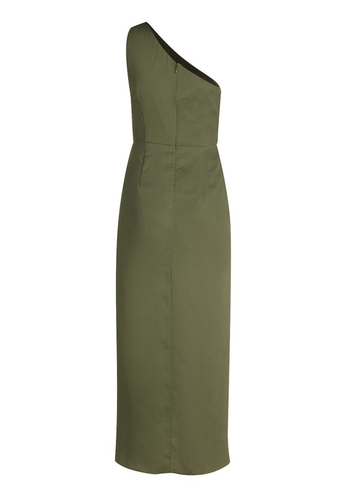 Elegant, vrouwelijk en verfijnd: deze one-shoulder jurk is een stijlvolle keuze voor iedere speciale gelegenheid. De jurk is uitgevoerd in een soepelvallende stof met een subtiele glans, wat zorgt voor een luxe uitstraling en een mooie, vloeiende beweging tijdens het dragen.