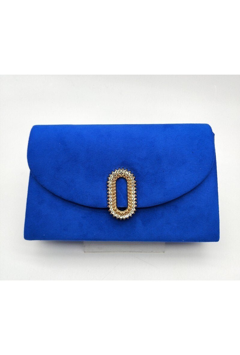 Deze stijlvolle clutch is een echte eyecatcher en perfect voor feestelijke gelegenheden. De zachte suède-look geeft de tas een luxe uitstraling, terwijl de verfijnde ovale siergesp met strassdetails zorgt voor een chique finishing touch. Dankzij het tijdloze ontwerp is deze clutch gemakkelijk te combineren met zowel avondjurken als elegante outfits.