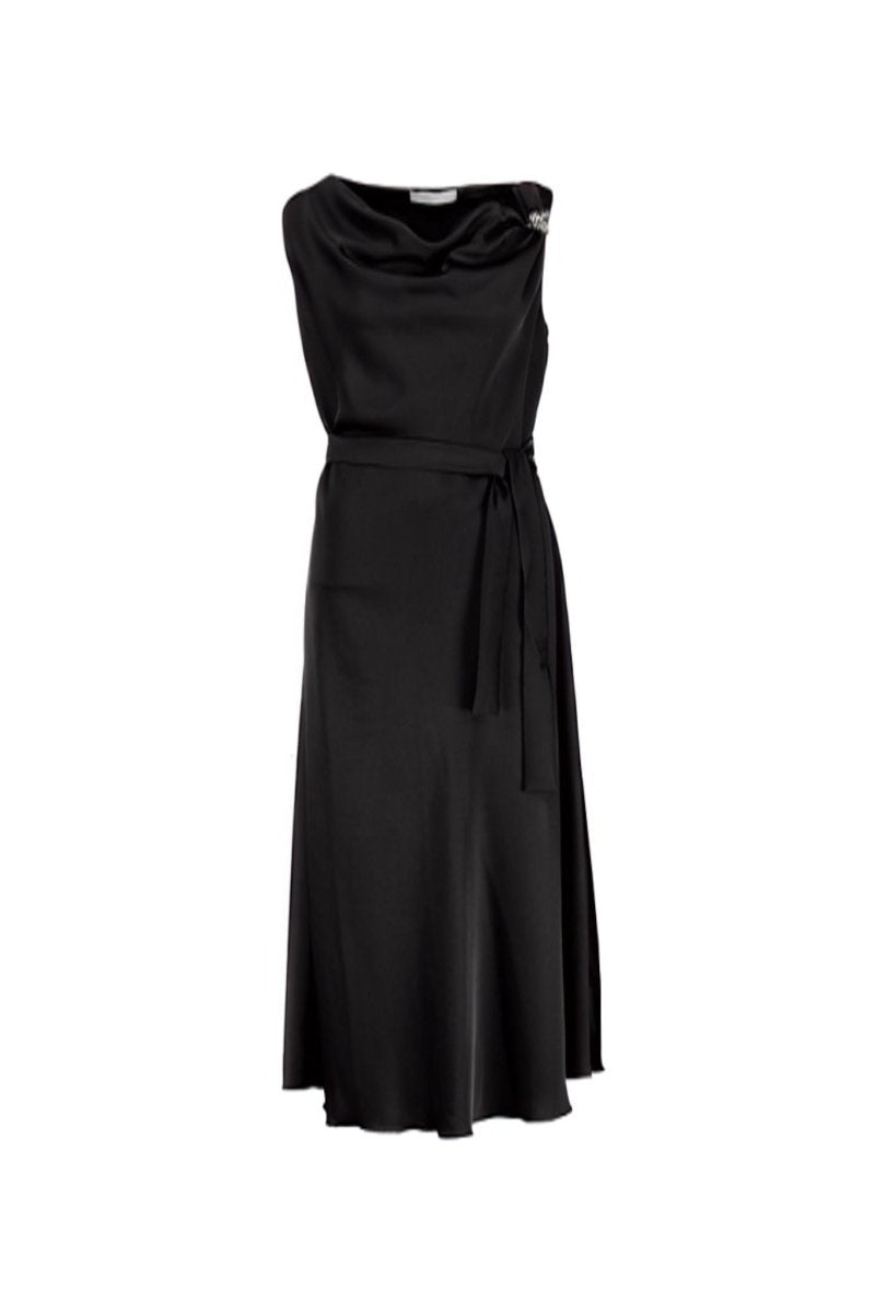 De Nolana jurk van Amélie & Amélie straalt pure elegantie uit. Deze luxueuze satijnen jurk heeft een vloeiend vallende stof met een subtiele glans, wat zorgt voor een verfijnde en vrouwelijke uitstraling. De watervalhalslijn accentueert het decolleté op een elegante manier, terwijl de bijpassende ceintuur de taille prachtig benadrukt.