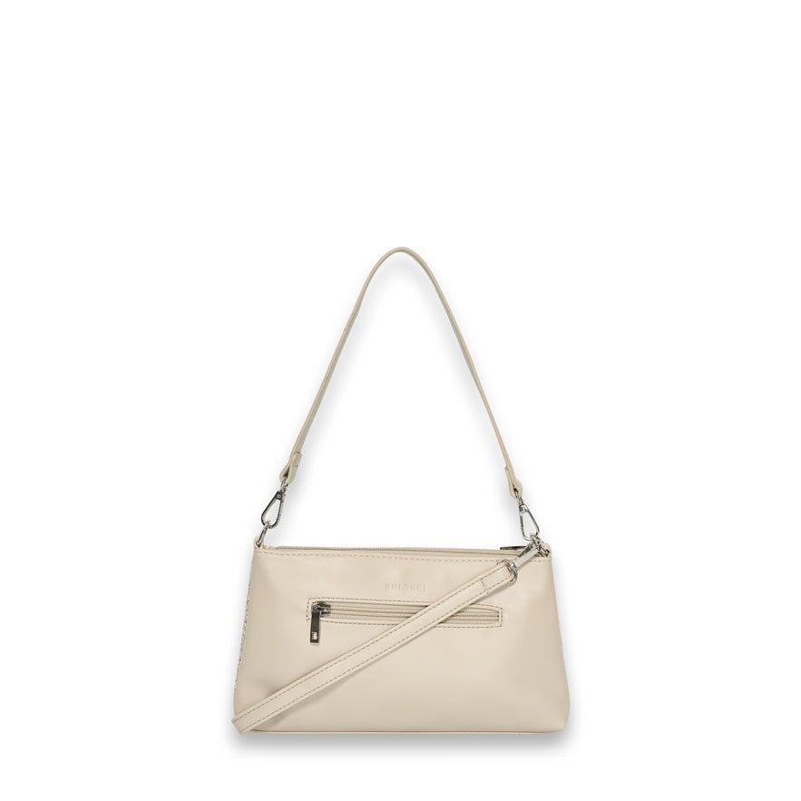 De tas is praktisch ingedeeld en sluit met een ritssluiting aan de bovenzijde. Aan de achterkant bevindt zich een extra ritsvak voor kleine essentials. Dankzij de afneembare en verstelbare schouderband kan de tas comfortabel over de schouder of crossbody gedragen worden, maar ook chic in de hand voor een avondje uit.